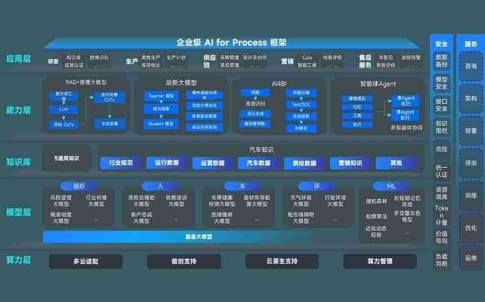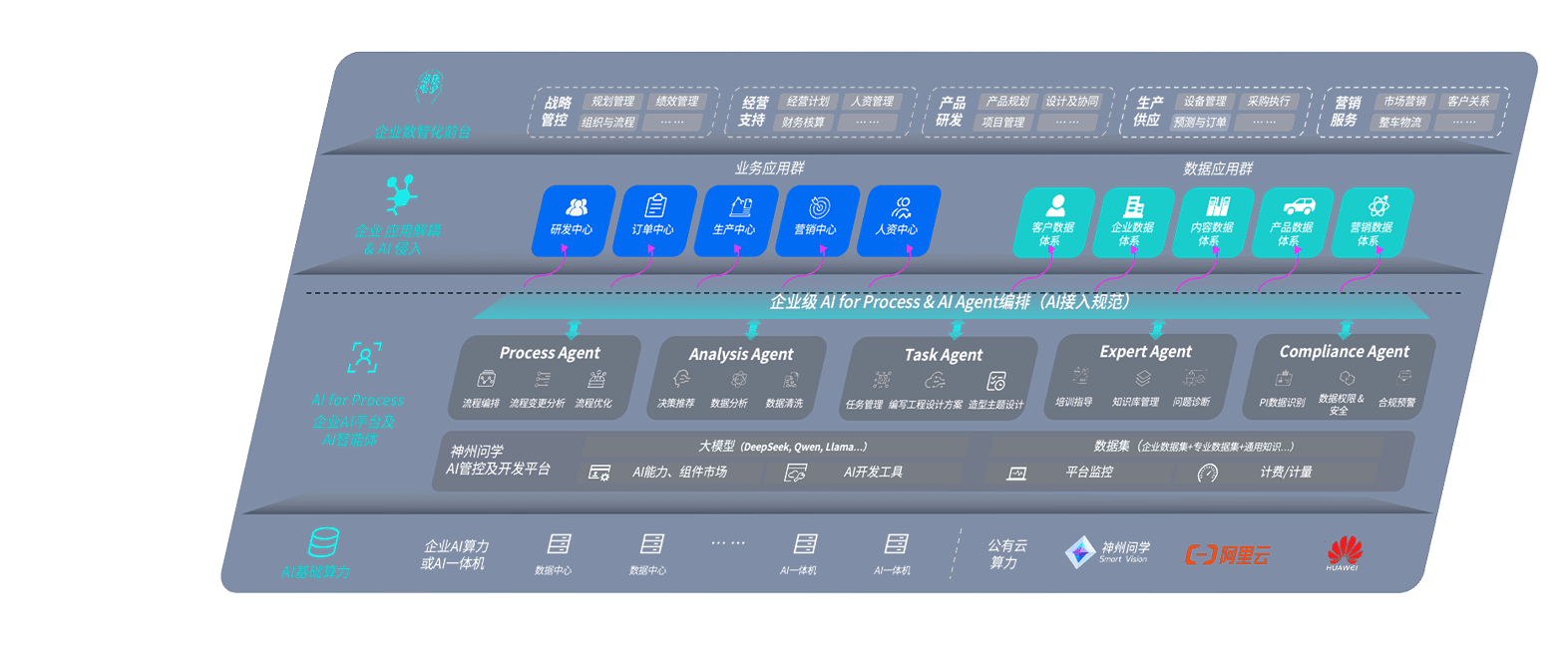 端到端的一站式AI工作空间深度融合了从企业战略规划到日常经营的全流程业务板块,,,定向解决车企内部领域多、、、部门多、、、、链条长、、场景碎片化等难题,,支持车企快速构建以AI为核心的生产力写作体系,,,实现任务执行与AI能力的无缝集成与交互